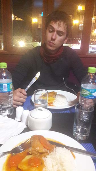 Nous attendons sur le bord de la route un collectivo mais c’est finalement en taxi qui nous amène à Ollantaytambo. Nous peinons à trouver l’hôtel mais une fois à l’intérieur celui-ci est plein de charme. Une fois installés, nous allons au restaurant pour déguster une formule traditionnelle péruvienne à base de quinoa, poulet, pommes de terre et cacao.