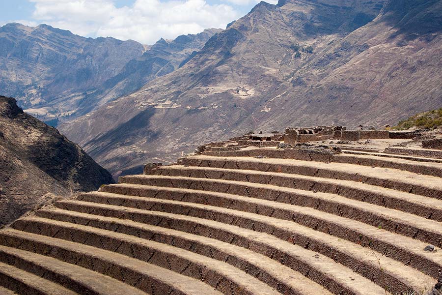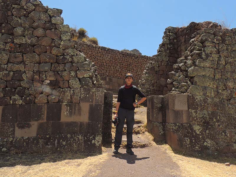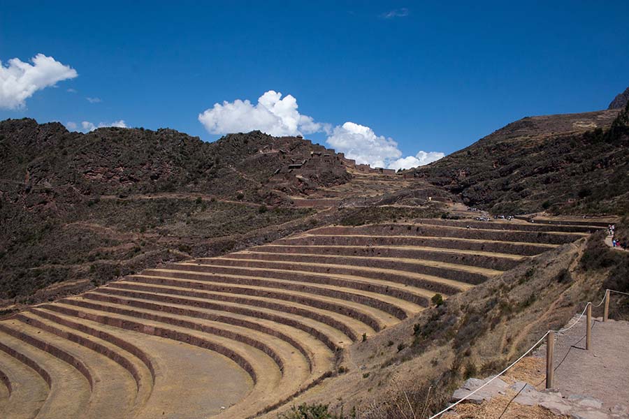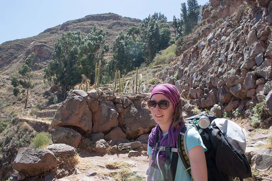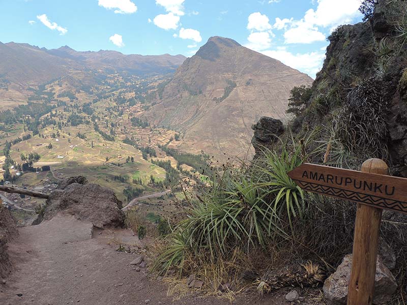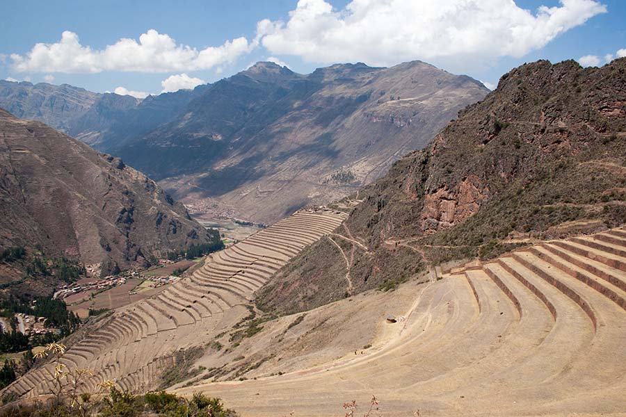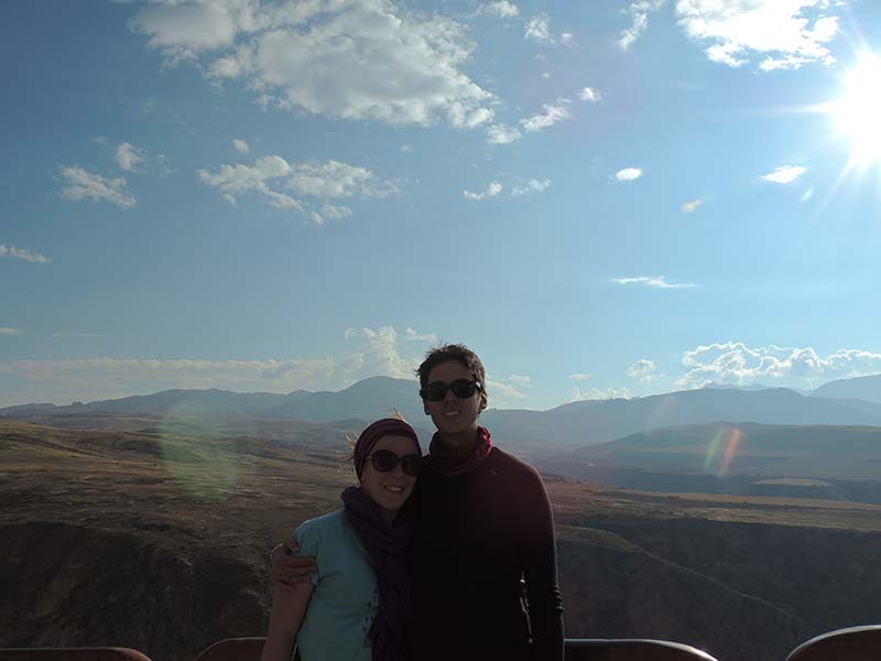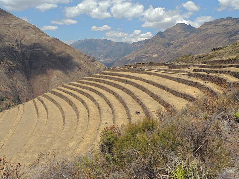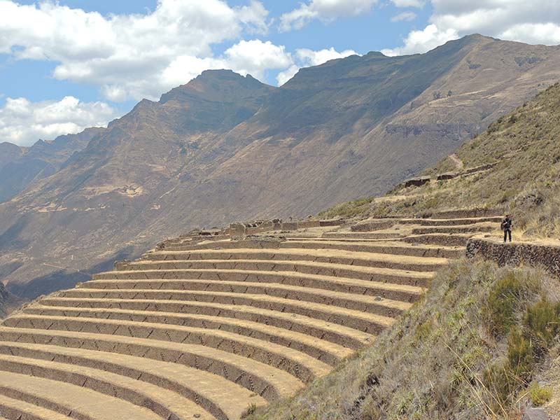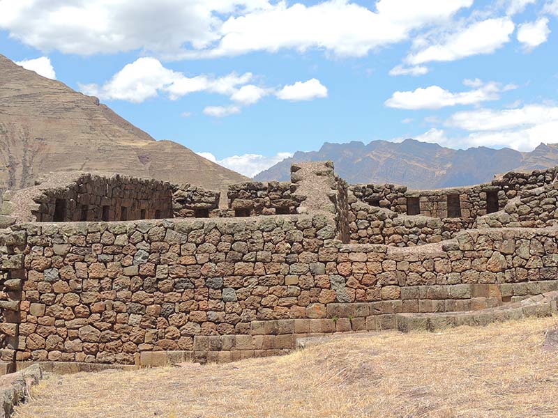 Romain : Aujourd’hui nous partons pour la vallée sacrée ! Après un petit-déj sommaire et avoir laissé une partie de nos affaires à l’hôtel, nous partons pour aller prendre un collectivo (un bus populaire). C’est bien il fait beau et chaud, ça faisait longtemps surtout que la douche du matin a été plutôt glaciale. Nous arrivons au point marqué sur le plan pour prendre le collectivo... et rien ! Nous demandons aux policiers et à des conducteurs de bus dans le coin. Nous finissons par prendre un taxi qui nous amène au terminal qui était en fait très loin. Nous sommes pile à l’heure. Nous voilà parti pour Pisac, notre première destination dans la vallée sacrée. Arrivés à Pisac, nous prenons un taxi pour aller aux ruines Inca. Elles sont perchées en haut d’une montagne surplombant des champs en terrasse. Il y a plusieurs villages, c’est assez impressionnant surtout que la montagne est assez à pic.