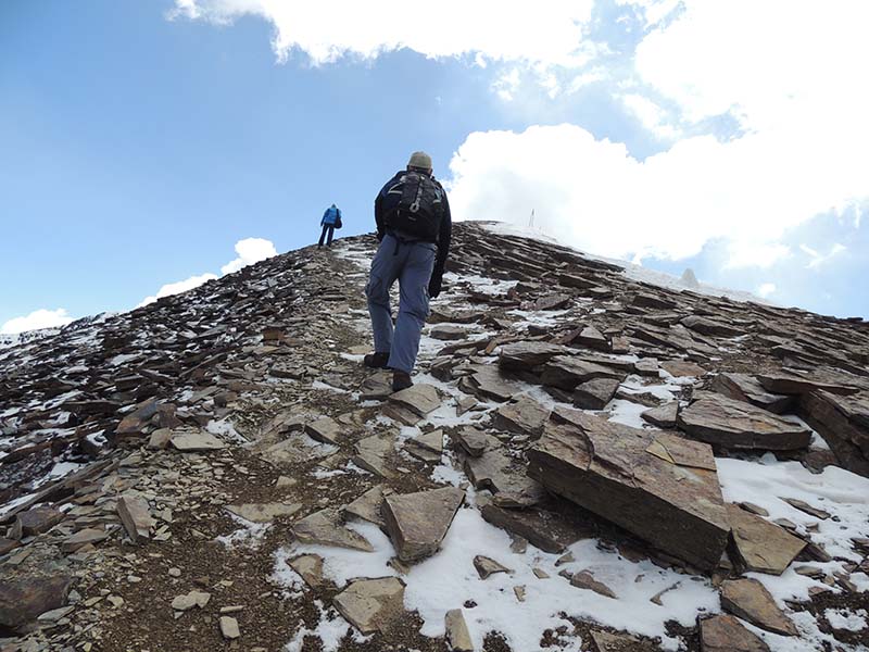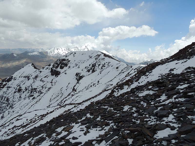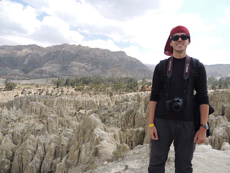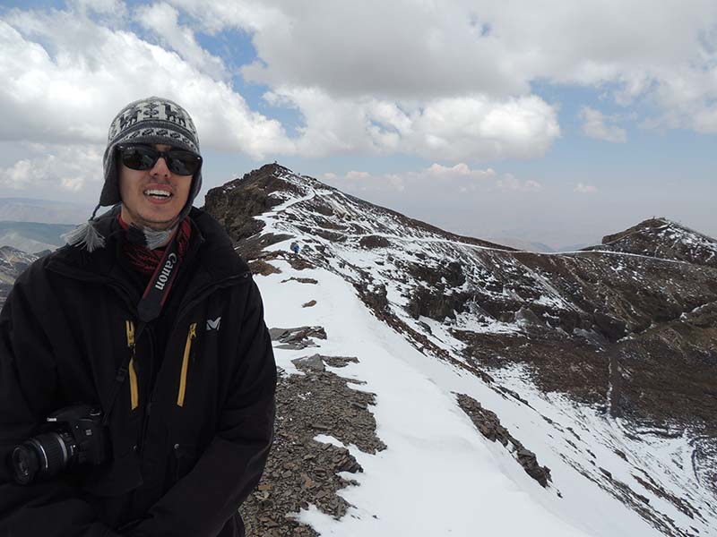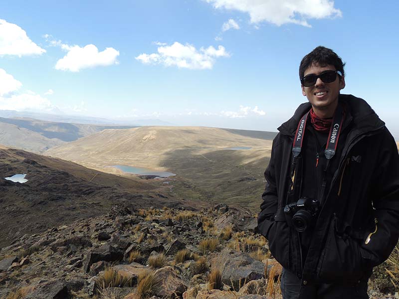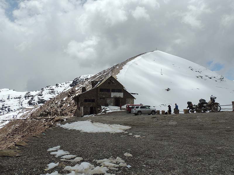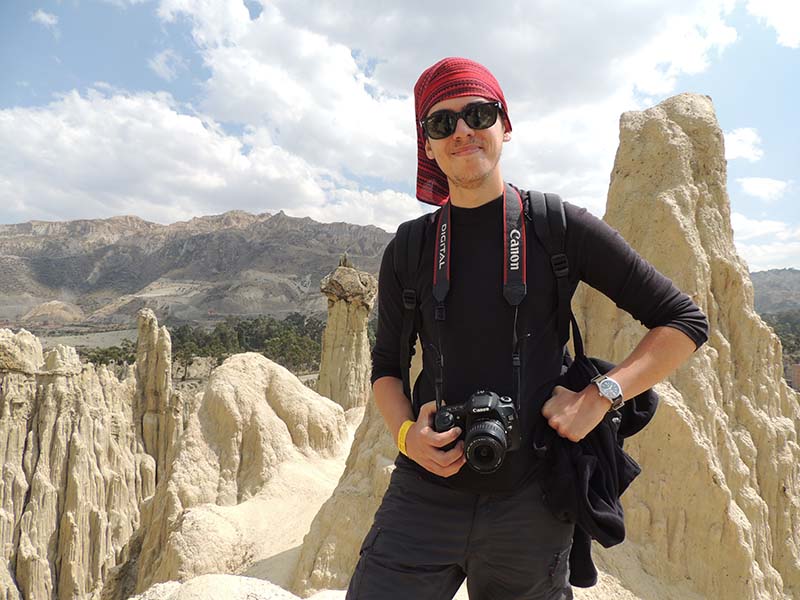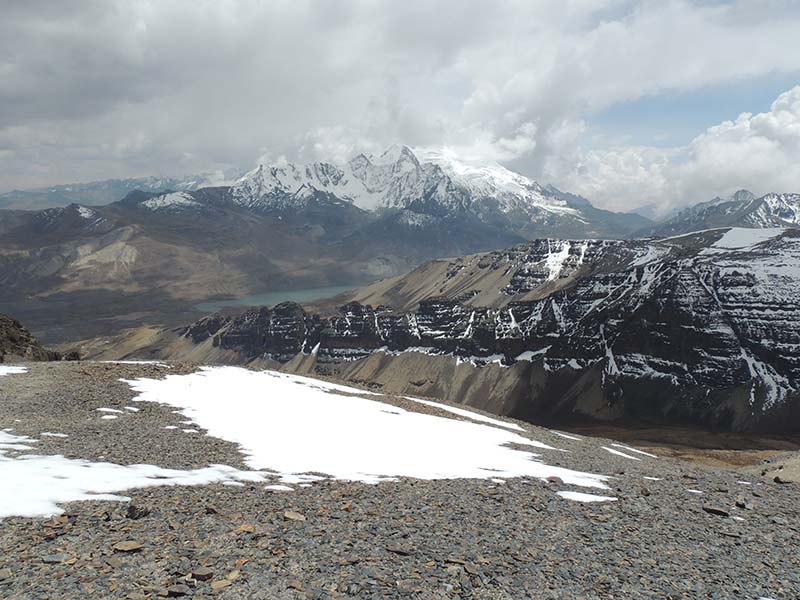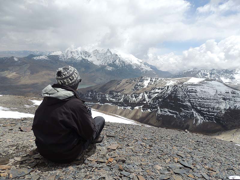 Cam : réveil pas trop tardif pour prendre le temps de petit déjeuner avant de partir pour le Mont Chacaltaya à 8h-8h20. Le petit-déj est copieux, le chauffeur du van pour l’excursion est à l’heure (pour un bolivien) et hop on est parti pour l’aventure. On parcourt tout La Paz pour récupérer tous les participants. On fait la connaissance de 2 Suisses fraîchement arrivés en Bolivie. Le mec a un peu le mal de l’altitude… qu’est-ce que ça va être à 5435m… en tout cas, ils sont bien sympa. Après environ 2h de route dont l’ascension spectaculaire de notre van/camionnette sur une piste rocailleuse, très pentue et parfois humide, nous arrivons à l’ancienne station de ski du Chacaltaya. La guide nous conseille sur les chemins à emprunter selon notre état avec l’altitude. Un des participants nous dit d’ailleurs, qu’en haut, on sera à 50% d’oxygène pile poil ! Notre ascension se passe bien, c’est magnifique. On est sur le toit du monde. Notre chemin est enneigé, parfois un peu verglacé, on se prend pour des alpinistes en herbe.
