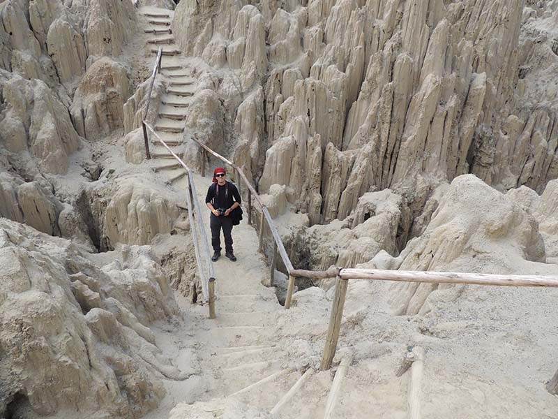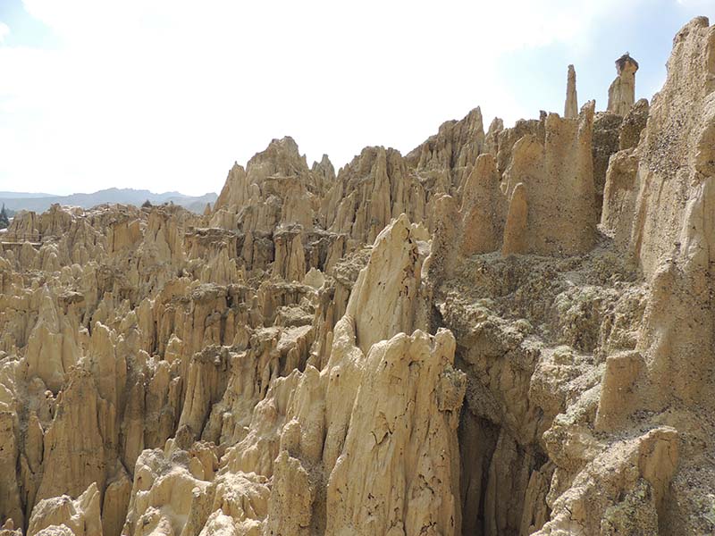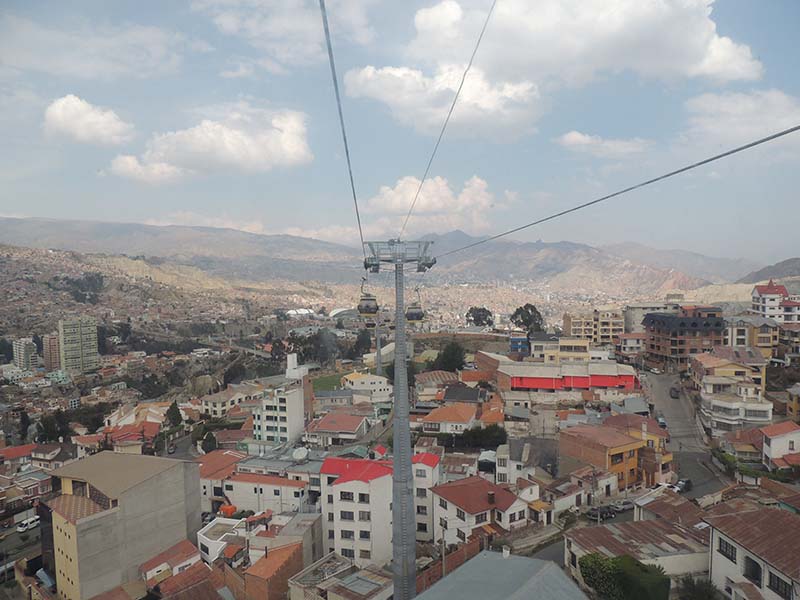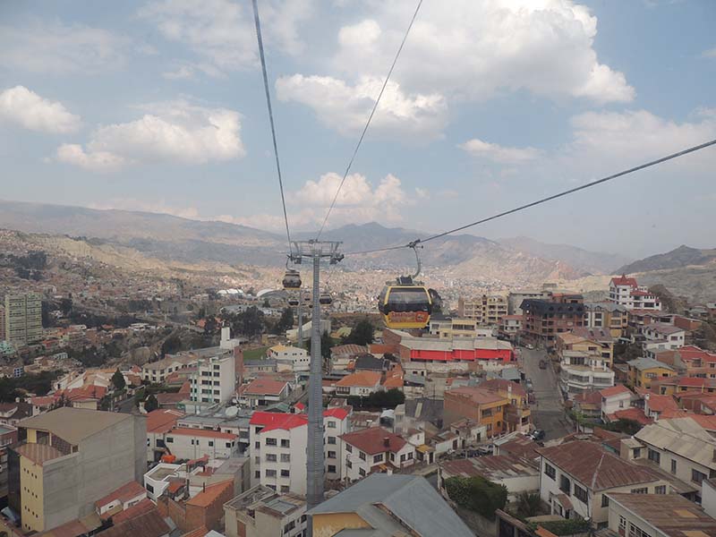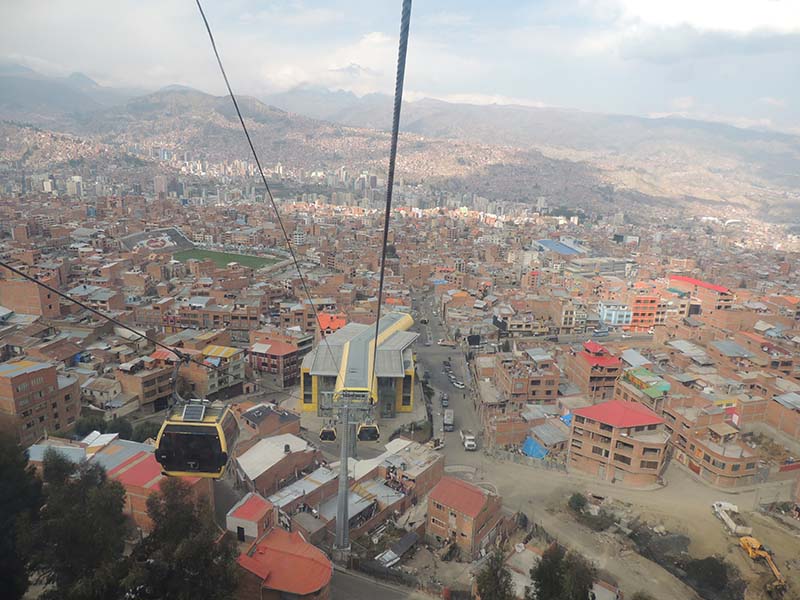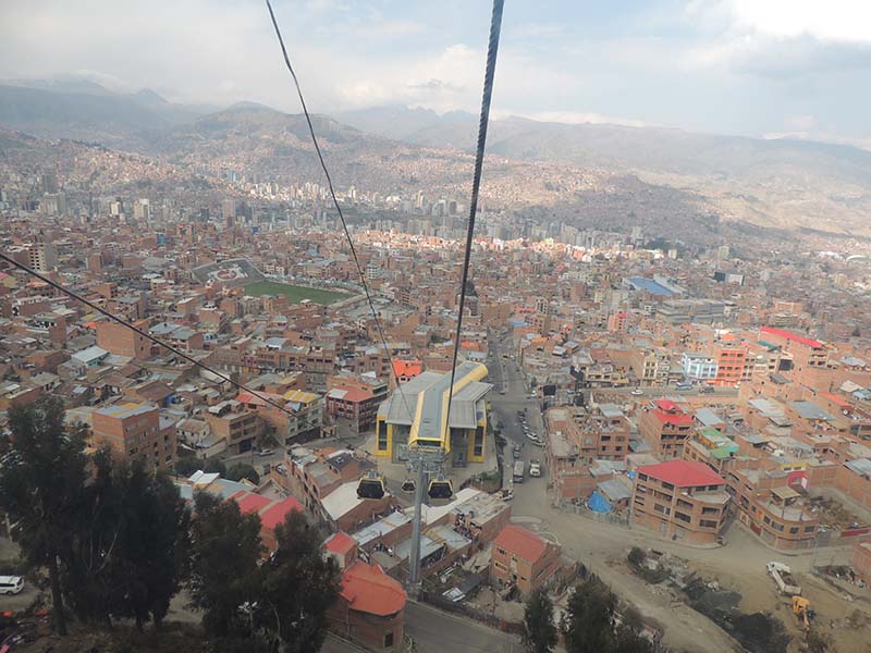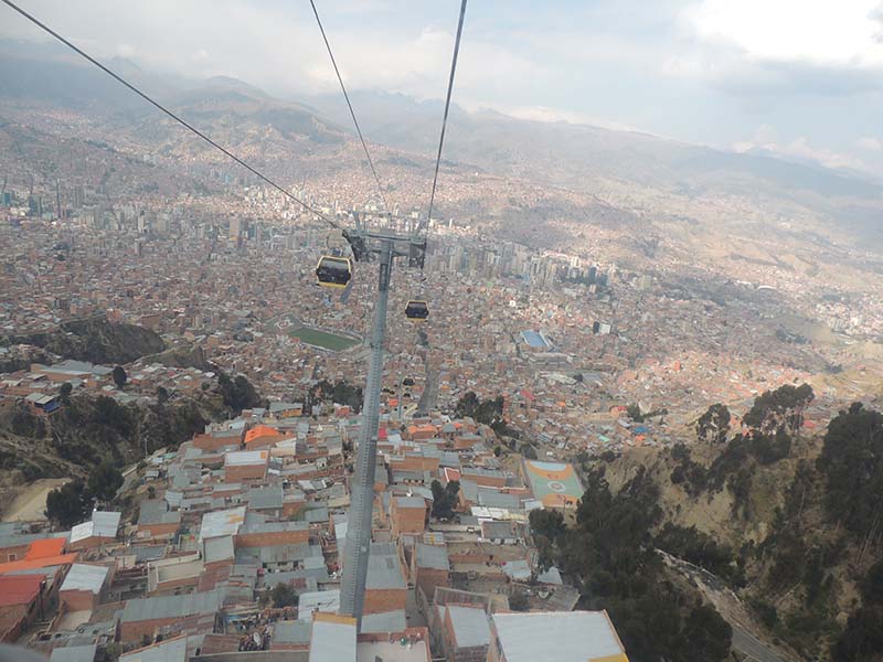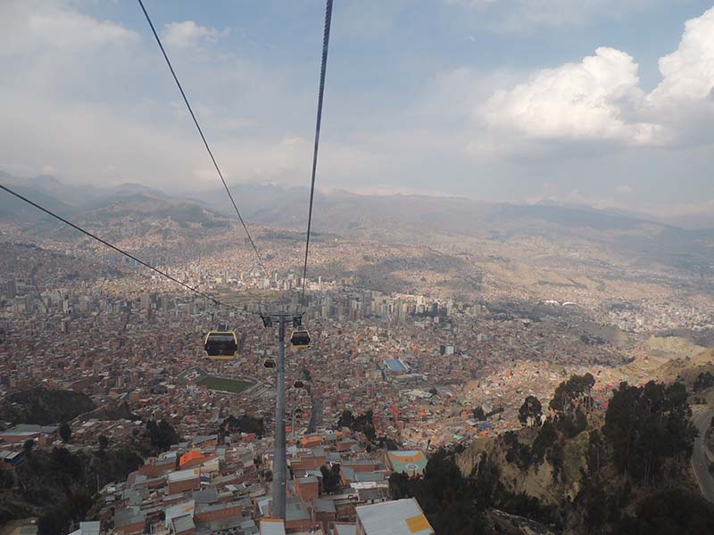 En retournant au van, on mange nos bananes pour retrouver des forces puis on part en direction de la vallée de la lune. C’est un site géologique fou et surprenant ! Encore une fois, la nature fait des trucs bizarres. Au retour, la guide nous propose de nous poser à la station du téléphérique jaune. De le prendre à la montée pour avoir une vue d’ensemble sur La Paz. Très bon conseil car cela nous permet d’apprécier l’immensité de cette capitale. Puis retour à l’hôtel pour souffler un peu avant de repartir manger dans un super bon restau cubain !!! Tout est trop bon, les mojitos, nos plats, le yucca frit ! Super soirée ! Maintenant dodo car demain retour à Lima.