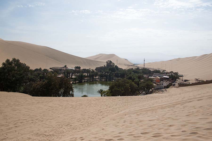 Retour à Banana’s adventure, la gentille nana de l’accueil nous rassure en nous disant qu’on a le temps de prendre une douche malgré le check-out de 11h... ouf ! Car ce n’est pas du luxe tout le sable accumulé ! (jusque dans la culotte !). On prend même le temps de manger un burger. L’ambiance est si agréable qu’on a du mal à partir de cet endroit si magique. Puis direction Nazca, arrivés aux terminaux de bus, nous trouvons un bus à 14h (difficile de comprendre la nana d’ailleurs...). Nous arrivons vers 16h30 à Nazca. Ville qui a l’air plus calme qu’Ica. On se fait alpaguer par les taxis mais on décide d’aller à pied à l’hôtel (repéré sur notre précieux routard). Arrivés devant la porte de celui-ci, on était un peu inquiet car ça ne semblait pas très vivant mais nous avons eu rapidement une réponse de Fernando ! Youpi !