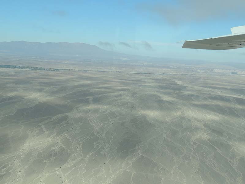 Nous sommes montés dans un petit coucou de 8 places avec un pilote et un co-pilote supers sympas ! C’était vraiment magnifique ce vol, aussi bien pour le paysage que pour découvrir ces fameuses lignes. Le vol a duré 35 minutes et nous a même pas rendu malades, ouf ! Nous sommes ensuite rentrés via une navette chez Fernando où un super petit-déj nous attendait. Notre bus partant qu’à 14h, nous avons pris le temps de buller dans la jolie cour intérieure de Fernando. Il nous a d’ailleurs bien aidés pour réserver la nuit supplémentaire à Uspalay (Arequipa). Marco est passé nous chercher pour nous déposer aux terminaux de bus. S’en est suivi d’une longue attente pour le départ à 14h, puis le long trajet (avec tempête de sable impressionnante), avec l’attente de savoir si oui ou non nous allions avoir à manger... car on avait super faim (heureusement que le petit-déj était copieux). Nous avons fini par avoir un petit snack vers 19h, ouf !