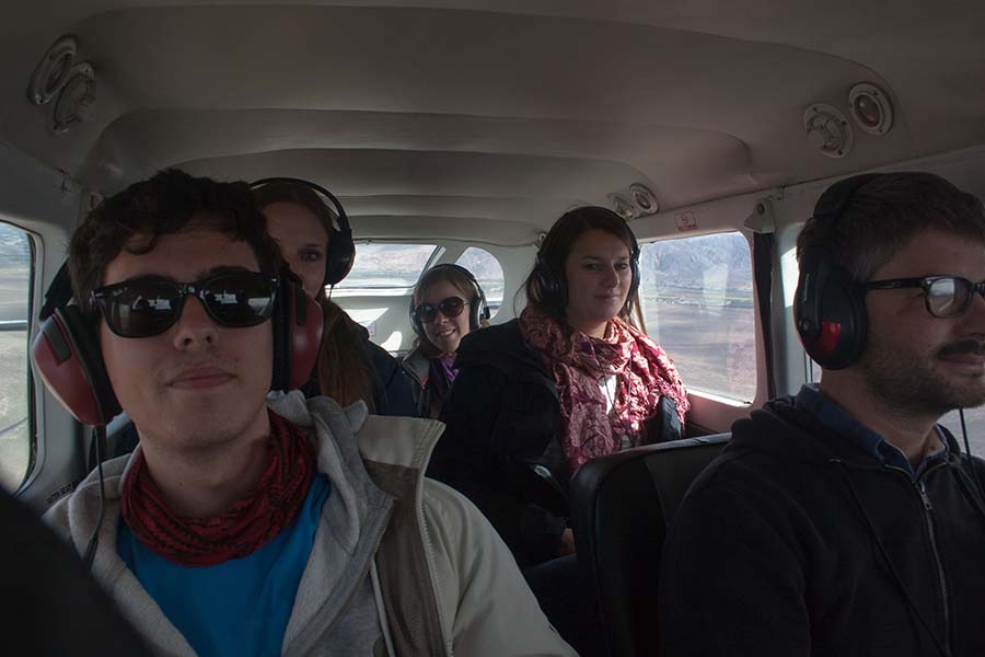 Romain : Un peu de retard aujourd’hui dans la rédaction du journal. Hier, nous avons pu apprécier les lignes de Nazca depuis le ciel. C’était féérique. Tout d’abord, nous sommes allés à l’aéroport de Nazca tôt le matin, nous sommes ensuite montés dans un petit avion de 8 places et nous avons pris les airs. Nous avons commencé par voir des lignes rectilignes puis des formes géométriques, elles-aussi parfaitement exécutées. Les lignes s’étendent sur des kilomètres et les formes mesurent parfois plusieurs centaines de mètres, c’est incroyable. Puis vient le survol de formes plus figuratives, tels que la baleine, l’astronaute, le colibri. C’est impressionnant de voir comment ces dessins se détachent par rapport à la couleur du sol. Le vol se déroule sans encombre, ça ne rend pas malade et les couleurs de paysages sont magnifiques. Après le survol des puits en spirales, eux aussi construits par les Nazcas, nous finissons par atterrir. Nous allons ensuite prendre notre petit déjeuner. Nous nous posons le reste de la matinée dans le jardin de l’hôtel. Nous prenons le bus pour un voyage de 10 heures vers Arequipa. Il va nous faire traverser une tempête de sable assez impressionnante. Nous finissons par arriver à Arequipa, 2300m, 1 million d’habitants. Nous verrons demain le décor car pour l’heure, il est presque 2h du matin.