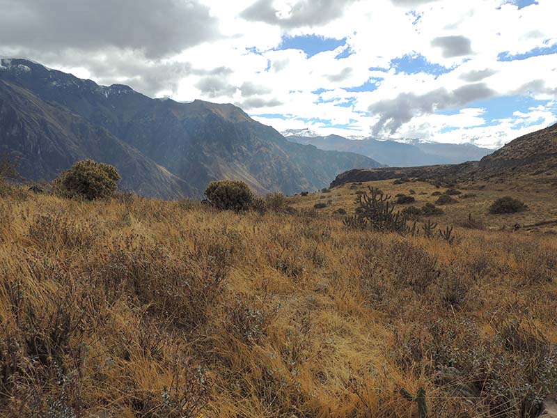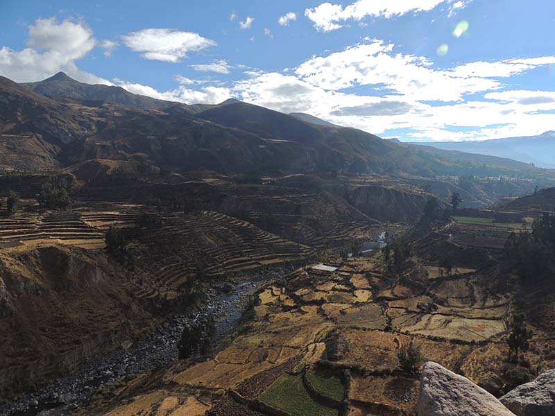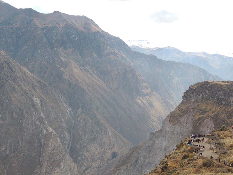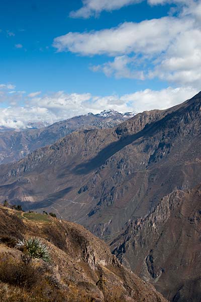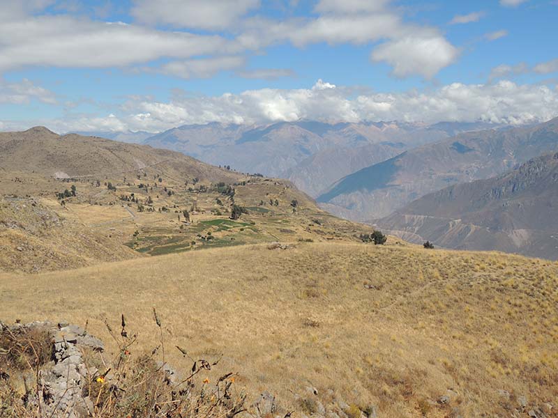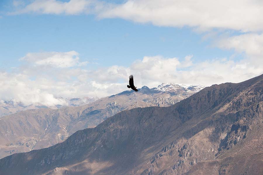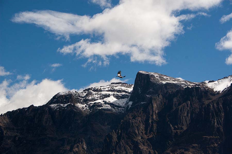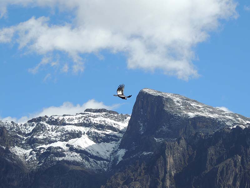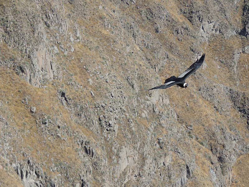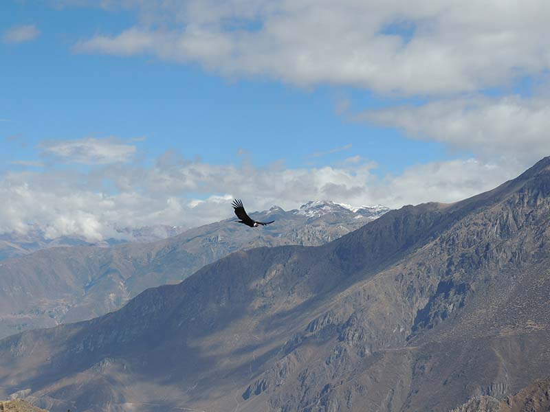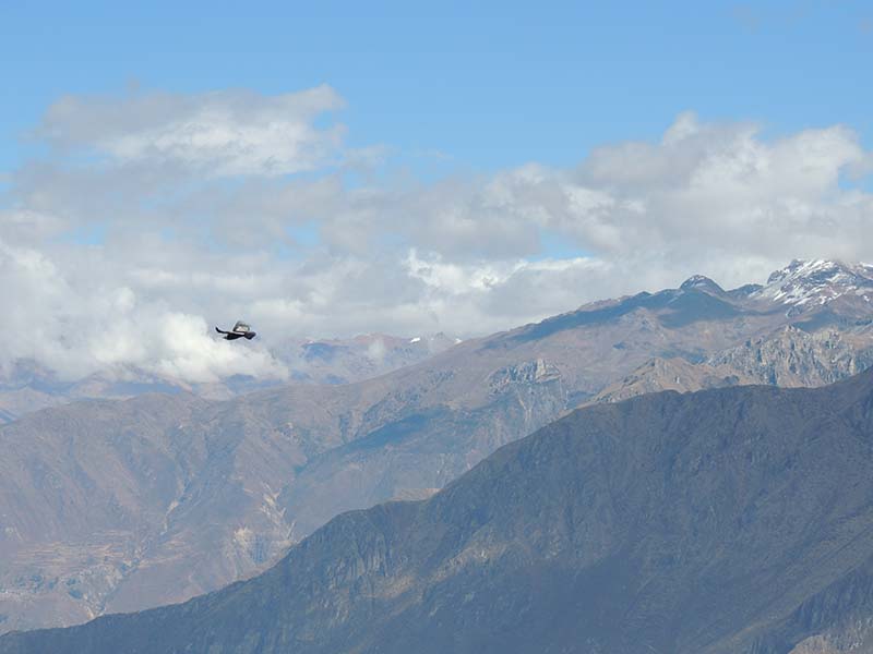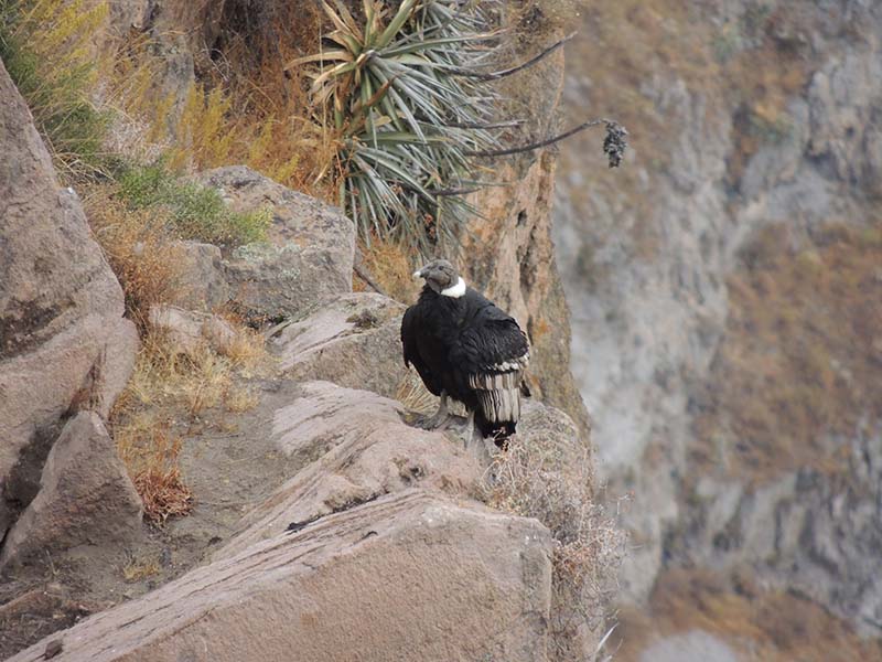 Romain : Hier nous avons quitté Tradicion Colca de bonne heure pour prendre le bus en direction de la Cruz del Condor en suivant une route dans le canyon del Colca. Nous faisons de nombreux arrêts pour admirer le paysage grandiose, cette fois-ci baigné par le soleil. Nous finissons par arriver à la croix du condor. Ce paysage est magnifique avec des gorges de 3000m de profondeur. C’est impressionnant ! Nous attendons un peu et dès que le soleil réapparaît, les condors s’envolent, ils sont très grands et très beaux à planer paisiblement, c’est époustouflant avec les montagnes en fond.