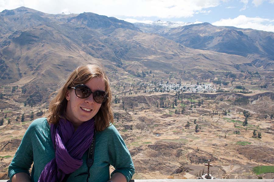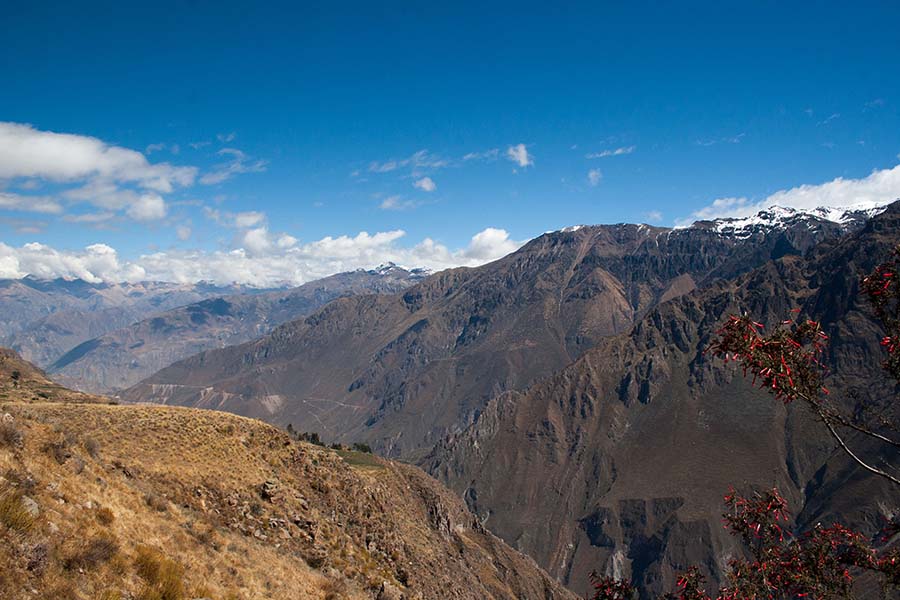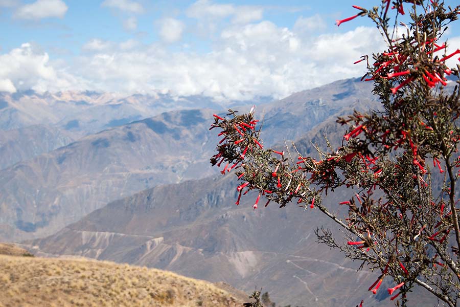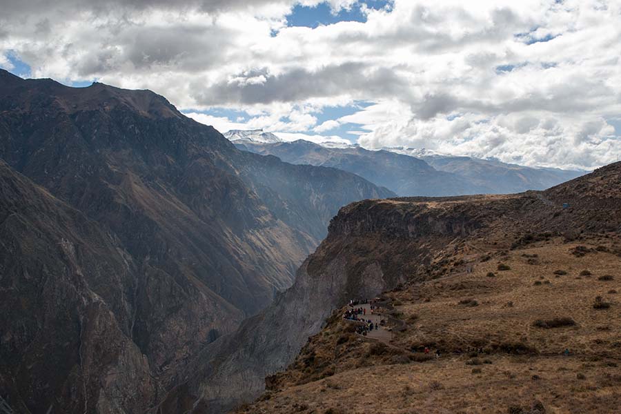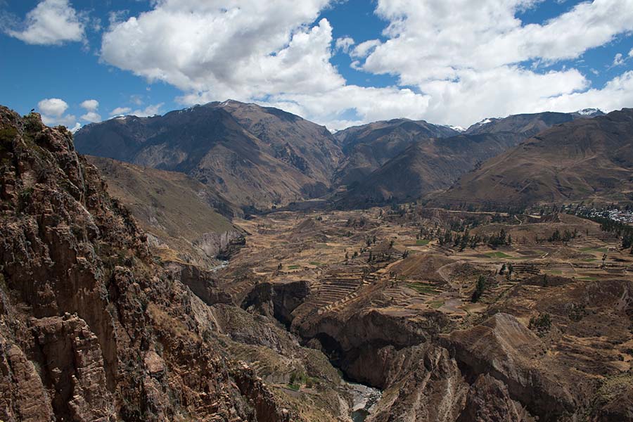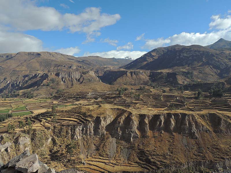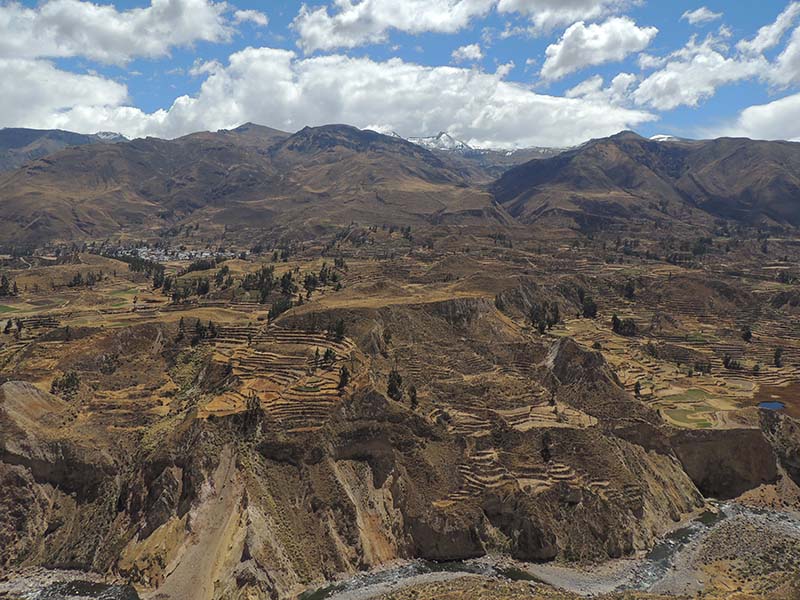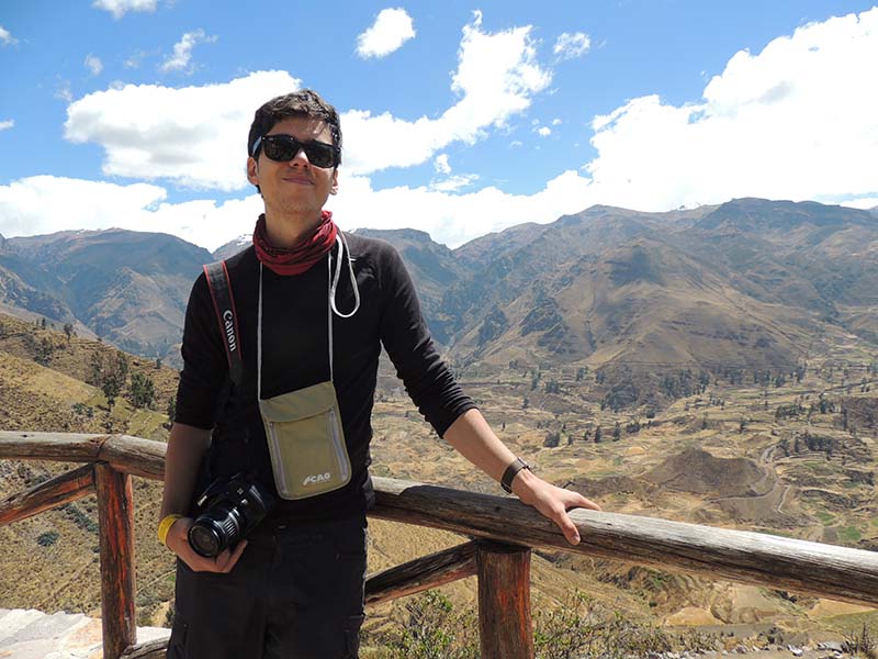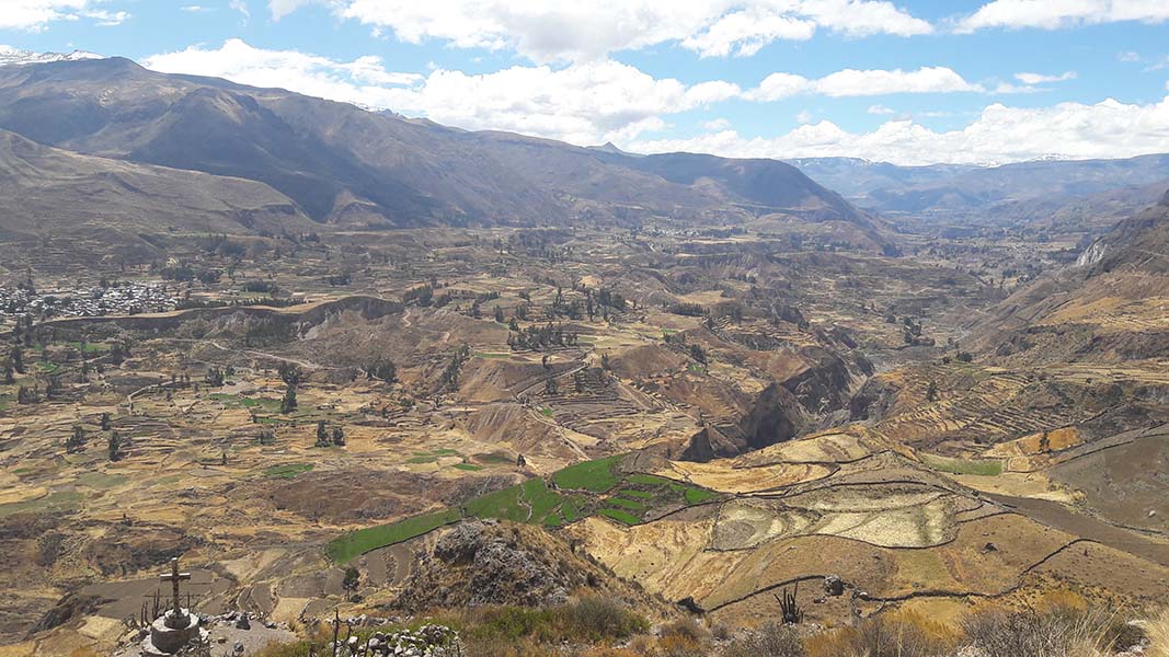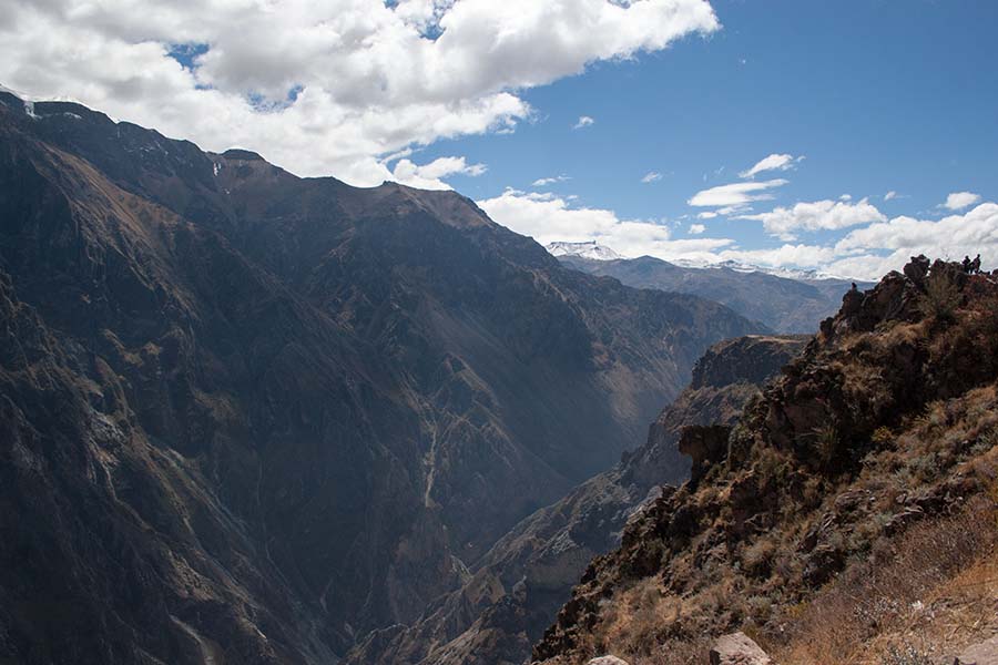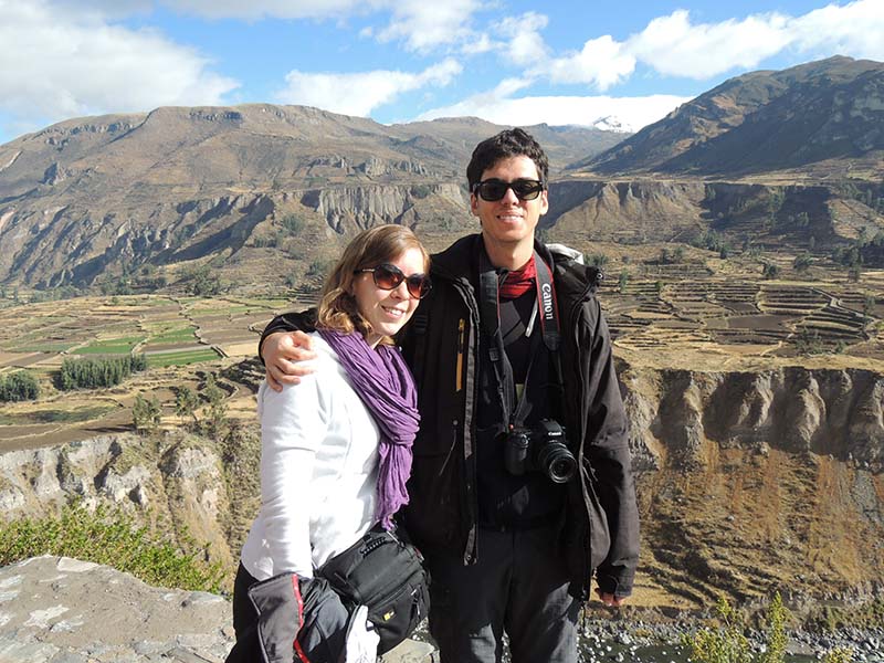 Romain : Hier nous avons quitté Tradicion Colca de bonne heure pour prendre le bus en direction de la Cruz del Condor en suivant une route dans le canyon del Colca. Nous faisons de nombreux arrêts pour admirer le paysage grandiose, cette fois-ci baigné par le soleil. Nous finissons par arriver à la croix du condor. Ce paysage est magnifique avec des gorges de 3000m de profondeur. C’est impressionnant ! Nous attendons un peu et dès que le soleil réapparaît, les condors s’envolent, ils sont très grands et très beaux à planer paisiblement, c’est époustouflant avec les montagnes en fond.