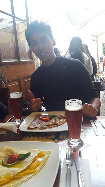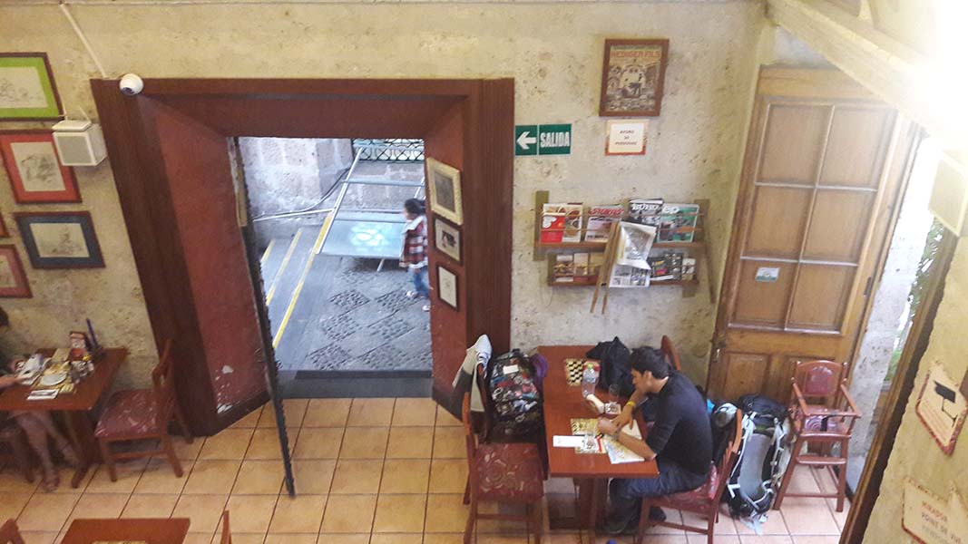 Le minibus avec Armando nous a déposés dans le centre d’Arequipa vers 16h30, ce qui nous a laissé beaucoup de temps avant le départ pour Cusco (20h). Nous sommes retombés sur Crepissimo... nous avons craqué pour des crêpes sucrées (mangue, sucre, miel) et une bière artisanale. Magnifique !