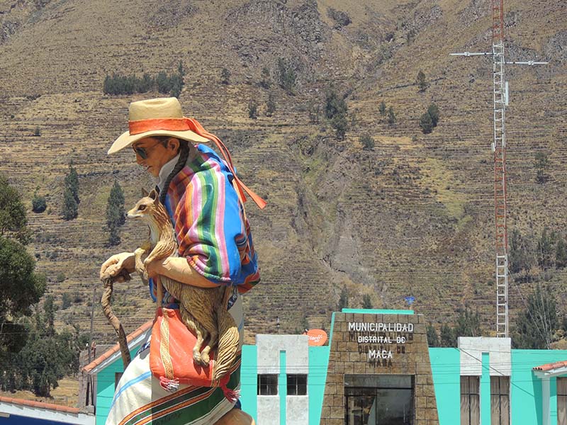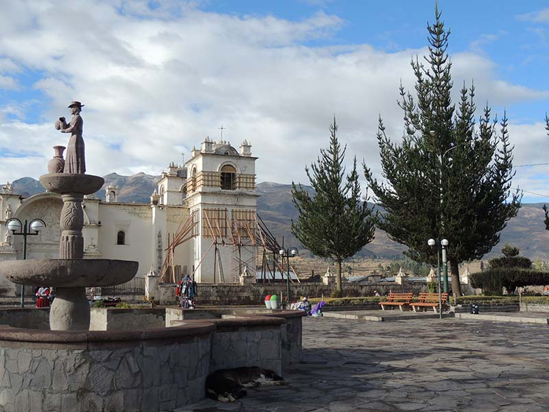 Nous finissons par repartir, nous faisons une pause à Maca où nous profitons de l’ombre sur la Plaza des armas et de l’église. Nous mangeons ensuite à Chivay pour ensuite revenir à Arequipa.