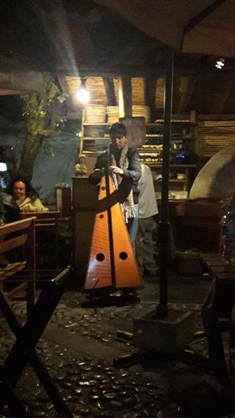 Après être retourné à l’hôtel et avoir préparé les prochains jours, nous finissons au restaurant Pachapapa où nous dégustons du lama et de la Chicha au son d’une harpe.